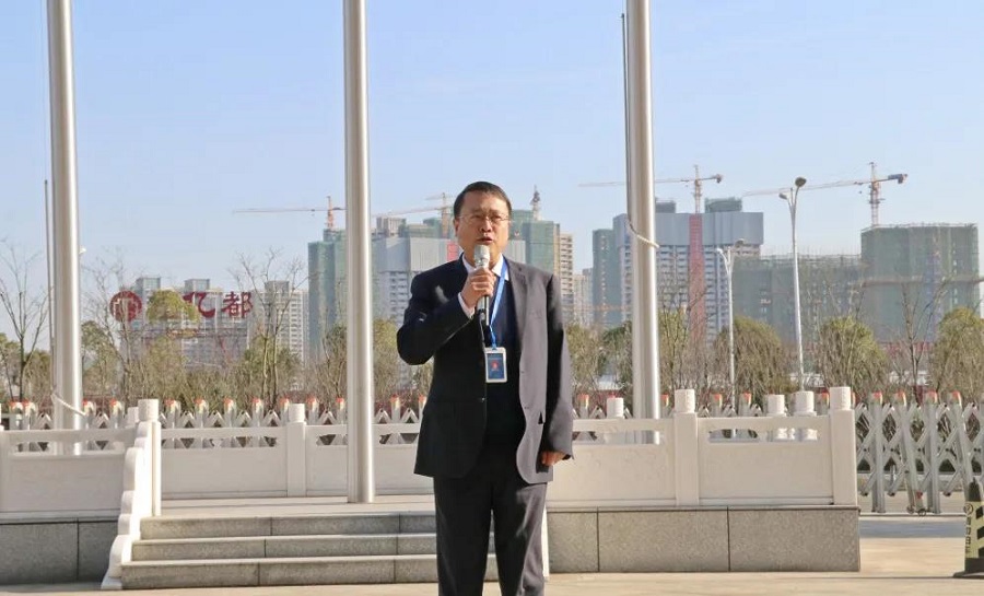 隨后,公司黨委書記胡流芳在國旗下發(fā)表新年講話。他首先代表公司向全體員工及家人拜年,致以新春的美好祝愿。他指出,新年舉行升國旗儀式,目的是為了激發(fā)大家的昂揚斗志,以飽滿的熱情、干事的激情、成事的豪情,盡快投入工作當中,推動公司高質量發(fā)展,為公司“十四五”開好局、起好步,助推公司早日實現(xiàn)“百億化建”目標。他強調,2021年是“十四五”開局之年,也是中國共產黨成立100周年。公司全體職工要發(fā)揮聰明才智,用務實的作風和不折不撓的精神,團結一心,鼓足干勁,奮力拼搏,以“起步即沖刺、開局即決戰(zhàn)”的姿態(tài),只爭朝夕、全力以赴,以優(yōu)異成績獻禮中國共產黨百年華誕!