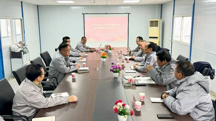 12月26日,中國化學四化建公司外部董事召集人張傳玉、外部董事潘來安、王挺一行赴公司岳化新材料項目開展調研。