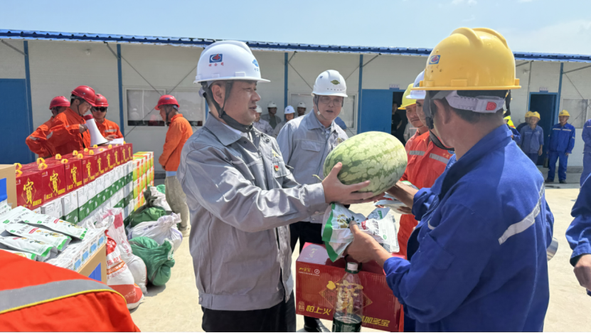 在項(xiàng)目現(xiàn)場(chǎng),張勇向奮戰(zhàn)在施工一線的工人致以敬意和問候,向他們發(fā)放了礦泉水、清涼飲品、防暑藥品等慰問物資。他強(qiáng)調(diào),安全是發(fā)展的前提,健康是幸福的基石,各級(jí)管理人員必須將員工生命安全與身體健康放在首位,壓實(shí)安全責(zé)任,強(qiáng)化現(xiàn)場(chǎng)管理,杜絕麻痹思想。工會(huì)組織要切實(shí)發(fā)揮橋梁紐帶作用,做實(shí)做細(xì)員工關(guān)懷工作,確保各項(xiàng)防暑降溫措施落地見效,保障人員平安度夏。