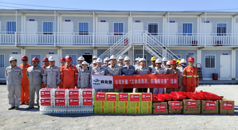 8月2日,受公司工會委托,公司安全生產(chǎn)管理部與華北公司在廣西桐昆項目開展“工會送清涼,防暑保安康”慰問活動,為一線職工送去涼茶、鹽汽水、清涼日用品等防暑降溫禮包。慰問組深入各施工班組,與職工親切交談,詳細了解他們的作息時間和防暑措施,宣傳高溫作業(yè)及中暑應(yīng)急預(yù)案等相關(guān)知識,叮囑大家在堅守崗位的同時務(wù)必注意勞逸結(jié)合,確保安全健康作業(yè)。
