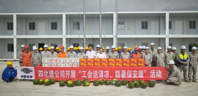近日,岳陽市總工會黨組書記、副主席林治學(xué)到中國化學(xué)四化建中南公司、中化勞務(wù)公司承建的岳陽云溪天辰大道項目看望慰問一線職工,送去藿香正氣水、夏桑菊顆粒、西瓜等防暑物資。林治學(xué)現(xiàn)場察看項目建設(shè)情況,了解施工難點和安全措施,肯定項目推進成效,強調(diào)要將職工安全健康放在首位,落實高溫勞動保護規(guī)定,科學(xué)安排作息,改善作業(yè)環(huán)境,預(yù)防事故發(fā)生,確保安全優(yōu)質(zhì)按期完成項目建設(shè)。