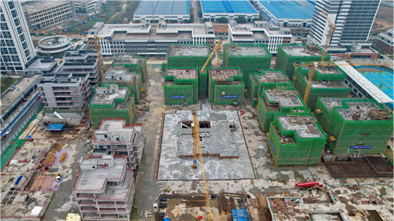 近日,由港晨公司承建的岳陽自貿(mào)片區(qū)數(shù)字經(jīng)濟(jì)產(chǎn)業(yè)綜合體建設(shè)項(xiàng)目C4、C5、C10、C11棟共計(jì)4個單體實(shí)現(xiàn)主體結(jié)構(gòu)封頂,C地塊多層建筑的主體結(jié)構(gòu)已全面封頂,進(jìn)入二次結(jié)構(gòu)及砌體砌筑施工階段。