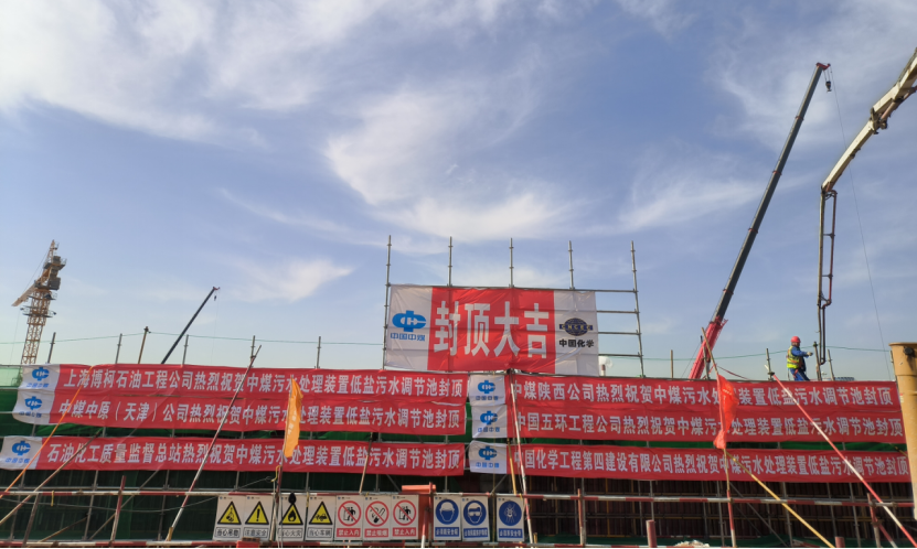 建筑工程公司中煤榆林項(xiàng)目低鹽污水調(diào)節(jié)池主體封頂