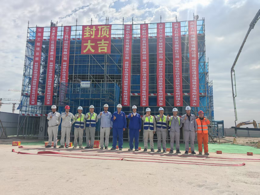 該項目位于內(nèi)蒙古自治區(qū)包頭市九原工業(yè)園區(qū)。自4月2日項目開工以來,面對進(jìn)度節(jié)點緊迫、質(zhì)量安全標(biāo)準(zhǔn)高等挑戰(zhàn),項目部充分發(fā)揚(yáng)“化建湘軍”敢打硬仗、能打勝仗的優(yōu)良傳統(tǒng),精心部署,合理調(diào)配資源,科學(xué)組織施工,全員負(fù)壓奮進(jìn)、晝夜攻堅,在既定節(jié)點內(nèi)順利完成10KV變電所主體結(jié)構(gòu)封頂目標(biāo),有效保證了項目建設(shè)高效推進(jìn)。